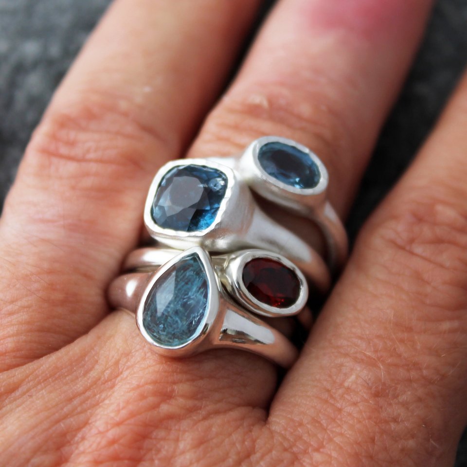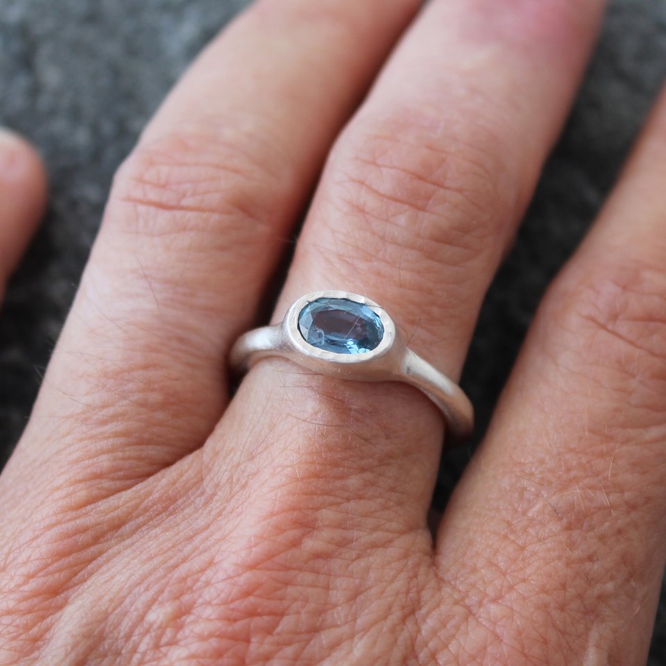A lovely blue sapphire ring created with a faceted oval sapphire, set in a sterling silver setting hand carved and cast by me. This is a US size 7.5 and is ready to ship. Sorry, the other rings in the last 2 photos are not included.
